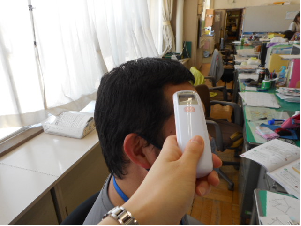 検温は、非接触式体温計を使用しています。