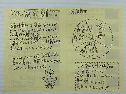 全校にアンケートを取ったり、実際にけがをしやすそうな場所を探したりして、