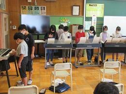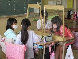 子ども達の学びは、友達と考えを伝え合うことで自分の考えを広げたり深めたりするものです。卓上パーテーションなどを活用しながら意見交流の場を作っています。また、音楽科では、リコーダーや鍵盤ハーモニカの練習にかえて、鍵盤楽器をたくさん用意して練習をするなどの工夫をしています。