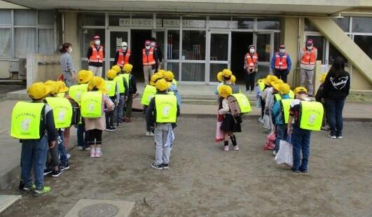 それぞれの児童の下校路に合わせ、教員が付き添って