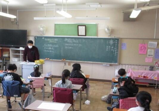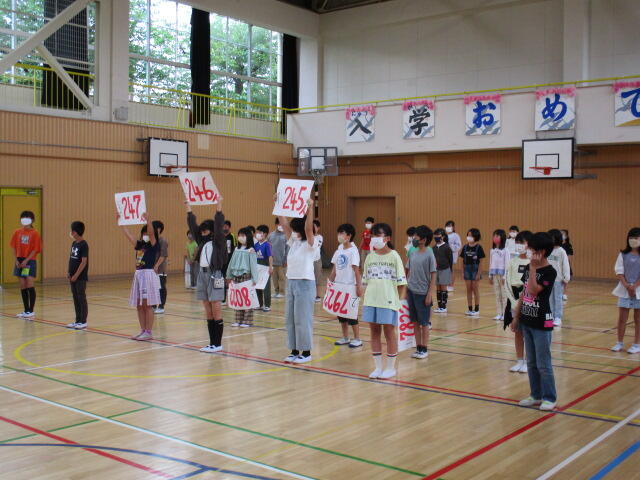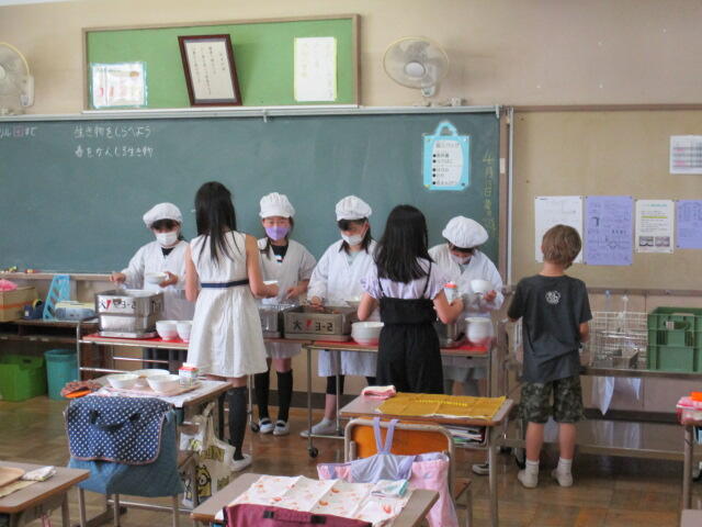4年生は、大山小クイズ(全校児童数・蔵書数・4年生の好きな給食メニュー)で