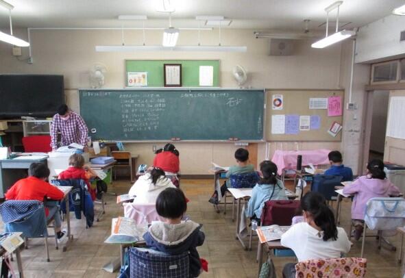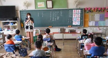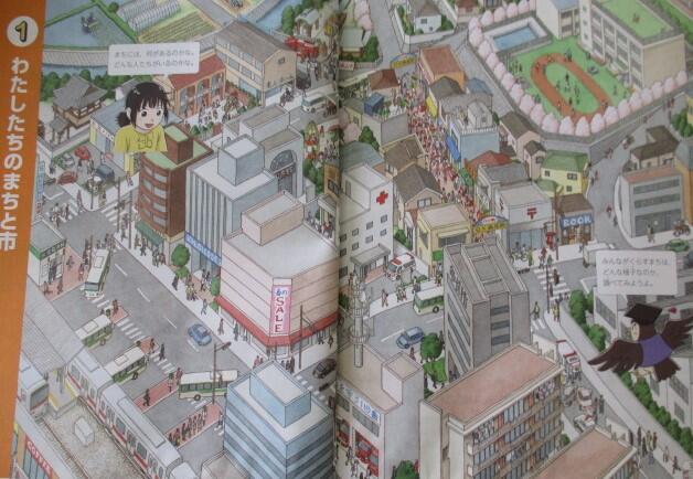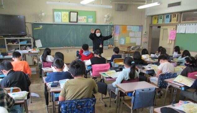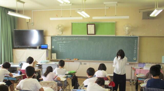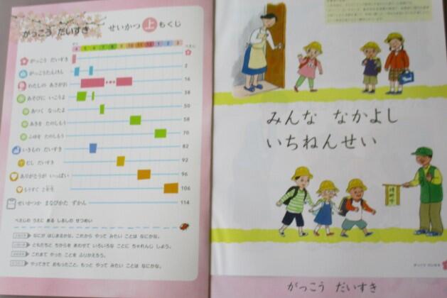 教科書の表紙に何が書かれているのかを先生は、子供たちに聞いていました。
