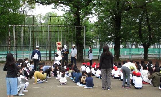 前回の避難訓練よりも2分も早く校庭に集合できました。