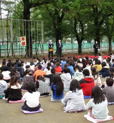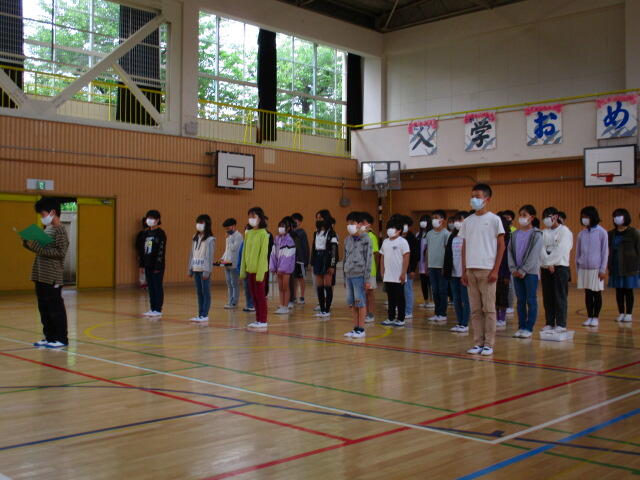 全児童に呼びかけました。みんな、よく話を聞いてくれていました。
