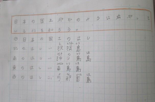 地図帳を見て、それぞれの島の位置を確認して、ノートに書き込みます。