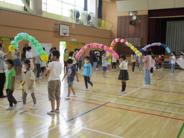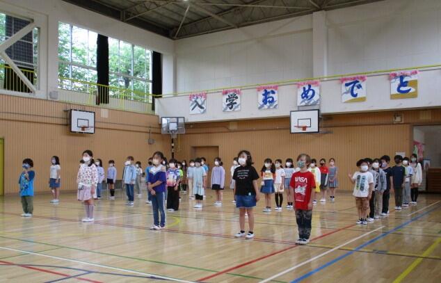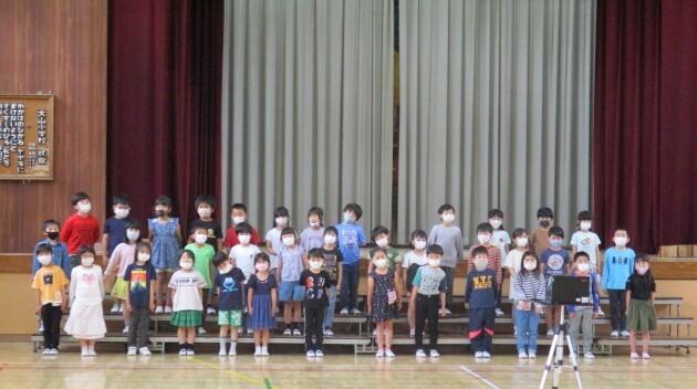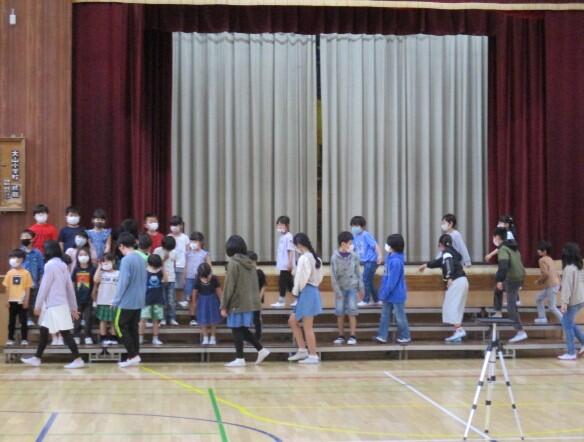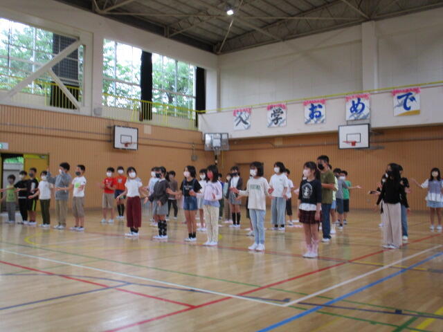 5年生は、「さんぽ♪」の曲に合わせて、大山小での勉強の楽しさや