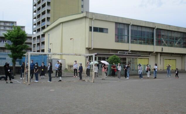 コロナ感染症対策のため、児童の引き渡しは1年生の保護者のみでの