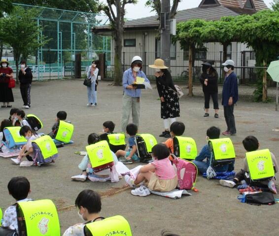 安全に登校することについて、先生のお話を聞きながら、みんなで学びました。