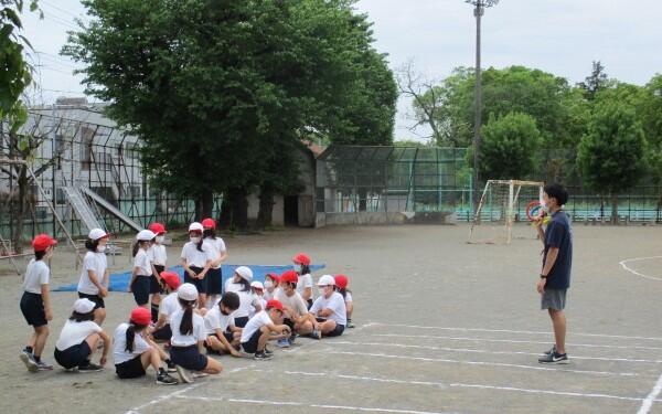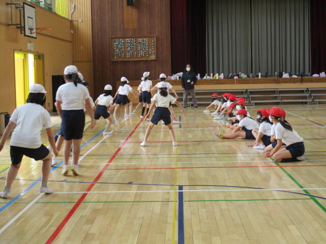 4年生は、体育科の学習です。体力テストで行う「反復横跳び」の