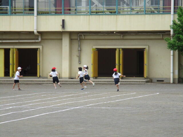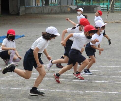 3年1組は、体育科の学習で50m走の練習をしていました。