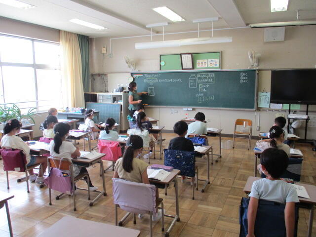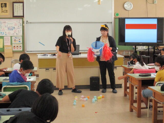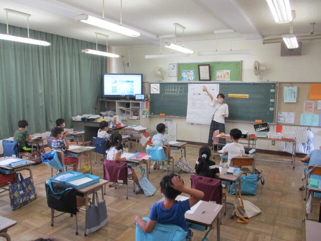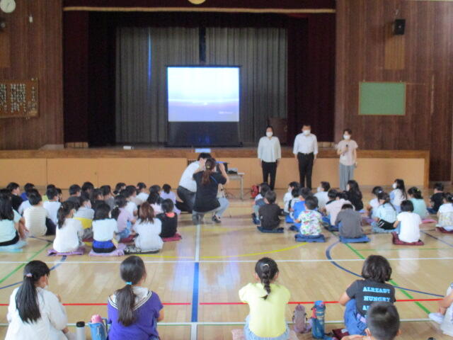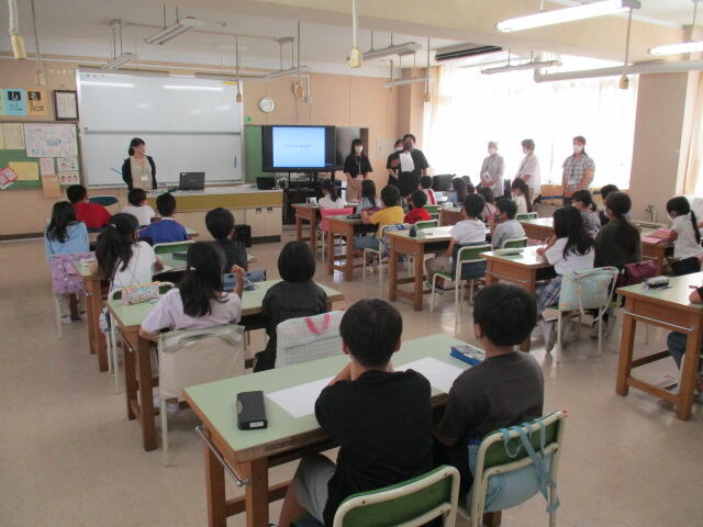 教室では、子どもたちが静かに先生方のお話を聞いて