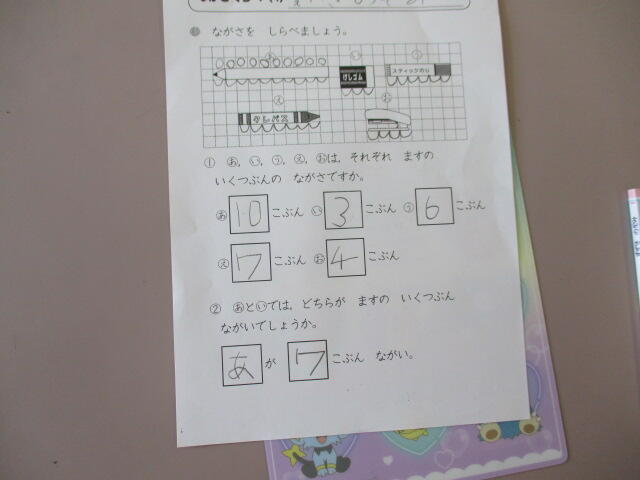 1年2組は、算数科の「ながさをしらべよう」の学習を