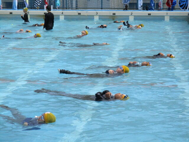たくさんの子どもたちが脱力してうまく浮いていますね。