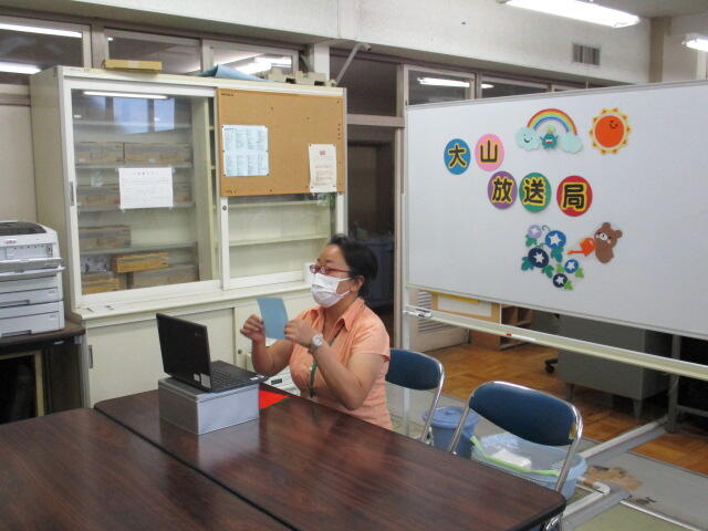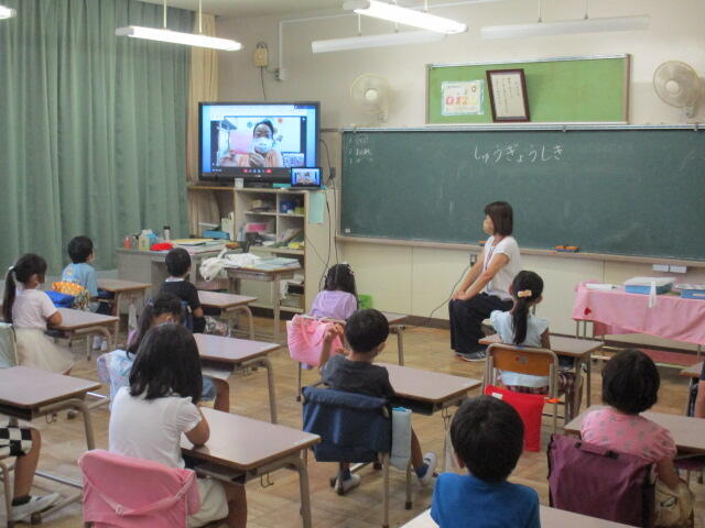 今朝、8:25に副校長先生の司会で、オンラインによる