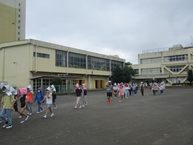 子どもたちは、放送の内容をよく聞き、事務室を避けて、