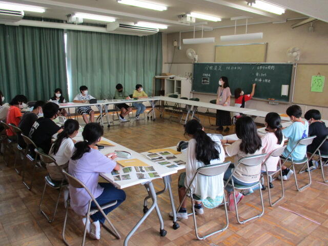 4年1組では、国語科「秋の楽しみ」の交換授業が