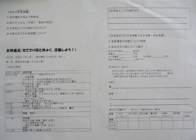 その後、6年生として班長として、全校遠足で1年生から5年生に