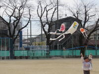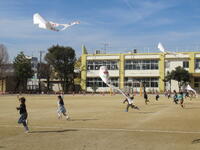 生活科の学習で、凧を作り、校庭で凧揚げをしました。
