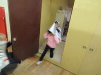 最後の訓練は、防火扉が閉まった際の避難の仕方でした。