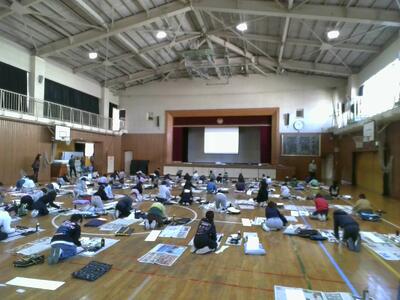 1月15日(木)に3年生全員で席書会を行いました。最初にみんなでめあてを確認し、書写の時間に習ったことを意識しながら丁寧に、真剣に書きました。