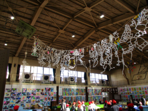 体育館が美術館になっています。素敵な作品をぜひ、ご鑑賞ください。