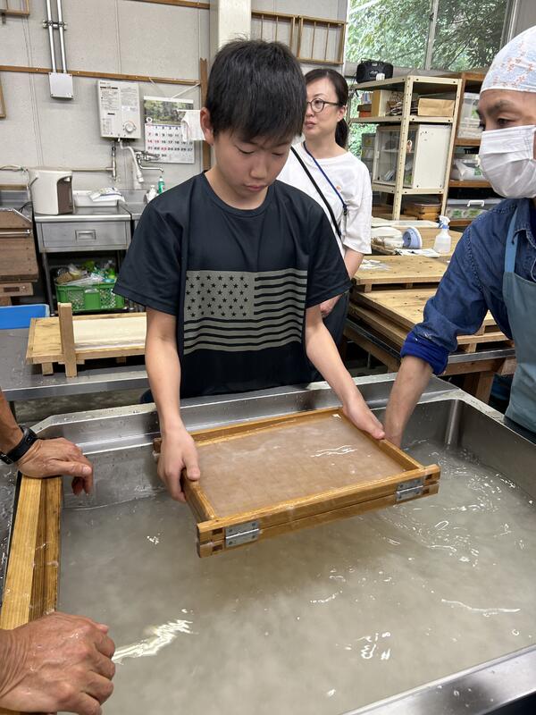 宿泊学習の目標は「自分のことは自分でする」「仲良くする」「ルールやマナーを守る」です。1日目の京王あそびの森ハグハグでは、マナーを守って仲良く遊ぶことができました。宿舎では荷物の整理、布団敷き、食事、お風呂など、目標を意識して頑張りました。2日目はふるさと工房で紙漉きをしました。様々な体験を通して成長を感じられる2日間でした。