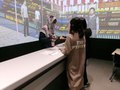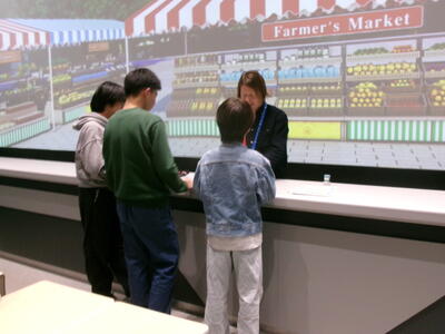 ショッピングの場面を想定した会話練習などに取り組み、身振り手振りを交えながら自分の思いを英語で伝えようとする姿が多く見られました。
