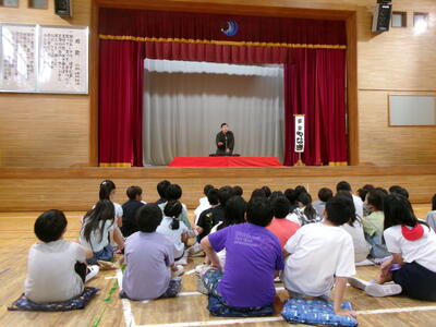 いつもの体育館が4年生のためのにぎやかな寄席となりました。