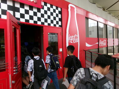 コカ・コーラボトラーズジャパン多摩工場では、コカ・コーラの歴史を学んだり、製造ラインを見たりしました。