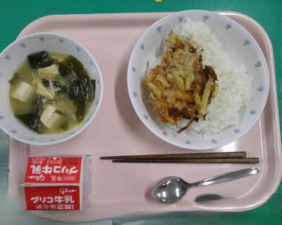 給食はほかに、牛乳・豆腐とわかめの味噌汁