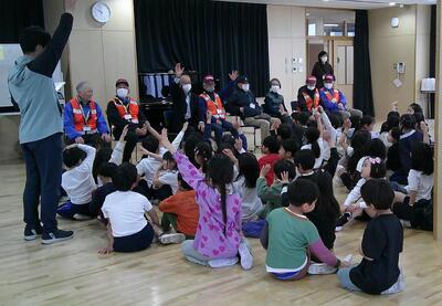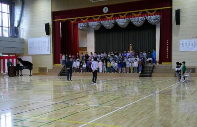 元気に歌っていました。新1年生に聞かせ