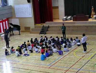 ます。司会の先生が、5年生に向かって