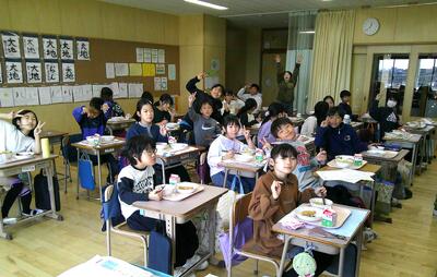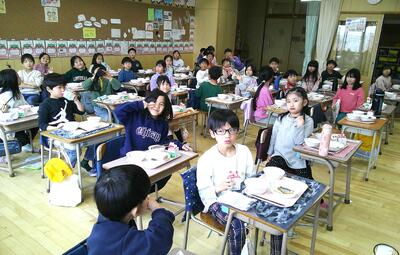 金曜日の給食は「梅わかごはん」。十小の6年生