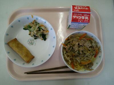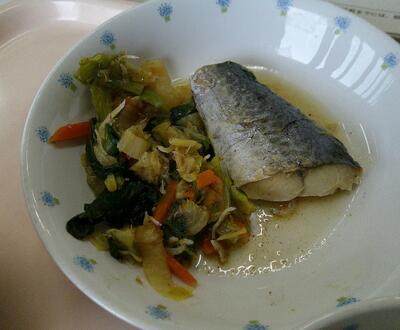 たい春の給食です。ほかに沢煮椀と牛乳でした。