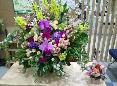 卒業式の壇上を華やかに飾った、花です。