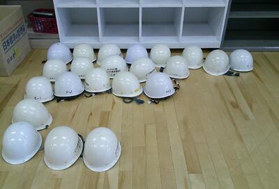 教師用のヘルメットを集めて過不足や