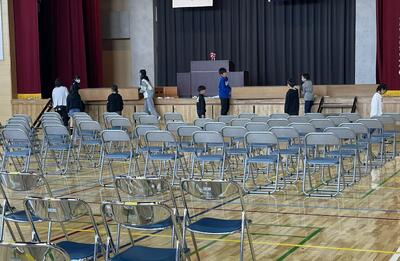 担当の先生と一緒にイスを出して、縦横き