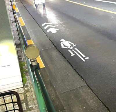 この印がある道路では、歩道を自転車
