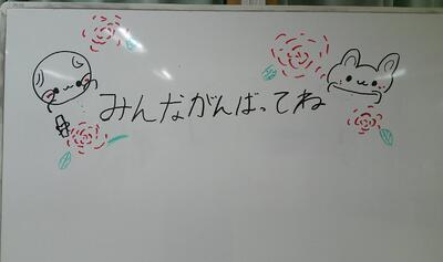 業生が、みんなにメッセージと絵を描い