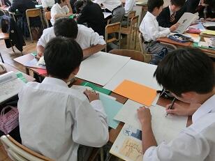 シルバーウィーク期間中に個人で調べた内容を班でまとめ、ポスター作成に取りかかりました。班で協力して、わかりやすいポスターを作ろうと一生懸命取り組んでいます。