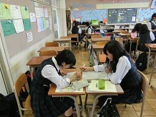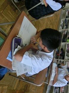 ◎お礼状作成の下書きでは、感謝の気持ちを強くもちながらあ、「どんな体験をしたのか」「何が印象に残っているのか」を細かく書いていました。清書のときにも、文字を間違えないように集中していました。生徒の至誠を見ていて、職場体験が生徒たちにとって、有意義であったことがわかりました。