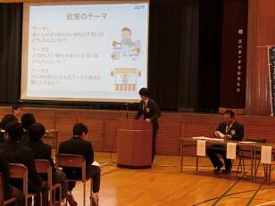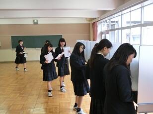 立川市青年会議所のご協力をいただき、みらいく【主権者教育】を実施しました。みらいくでは、体育館にて立候補者演説を行いました。模擬政策のうち、自分自身に必要な政策を掲げている立候補者を選ぶ場面があり、生徒たちは、真剣に政策の書かれた紙を見比べていました。そのあとには、多目的室を選挙会場に見立て、実際に、投票も行いました。選挙会場の静かな雰囲気も生徒たちにとっては新鮮だったようで、多くの学びが得られました。