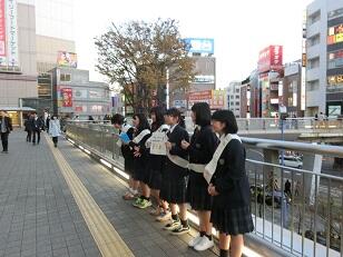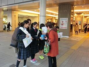 小中連携教育活動の一環として立川駅周辺で募金活動を行いました。大きな声で一生懸命に取り組む姿が見られました。45分間の活動でしたが、約25万円が集まりました。