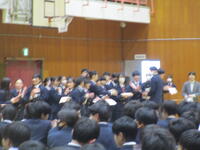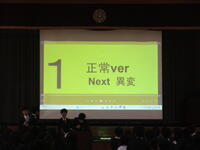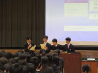 2つの映像を見比べ、変化に気づいた生徒が早押しで答えるという企画でした。映像の中では3年生の先生方に変化があり、その変化に答えることができた生徒は、その先生との思い出も発表しました。
