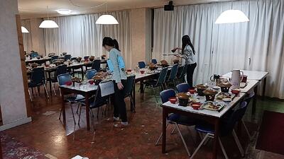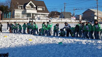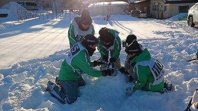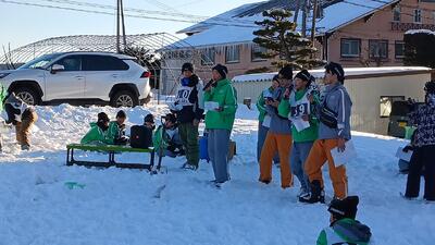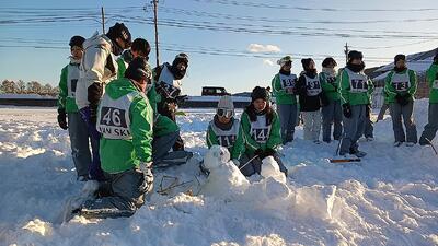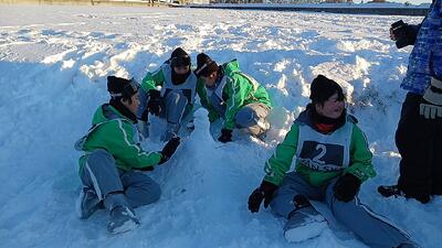 雪上レクリエーションを行いました。バケツの中にどれだけ雪を入れることができるか、ユニークな雪だるまを作る、お題を当てる等についてレクリエーション係が中心となって計画しました。
