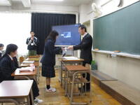 1時間目の授業の中で、マラソン大会の記録証を校長先生から一人ひとりに渡していただきました。