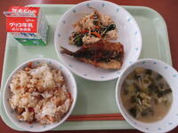 今日は、大豆ごはん、いわしのピリ辛ソース、もやしとささみの和えもの、じゃがいもと白菜のみそ汁でした!