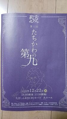 昨日、第1回たちかわの第九がたましんRISURU ホールで行われました。本公演は市民団体レイズ・ザ・ストリームとして初めてとなるイベントで立川を拠点に活動するアマチュアオーケストラMusica Promenade とタッグを組み、立川のまちから新しい文化の流れを生み出したいという想いのもとに実現しましたとプログラムの冊子に書いてありました。