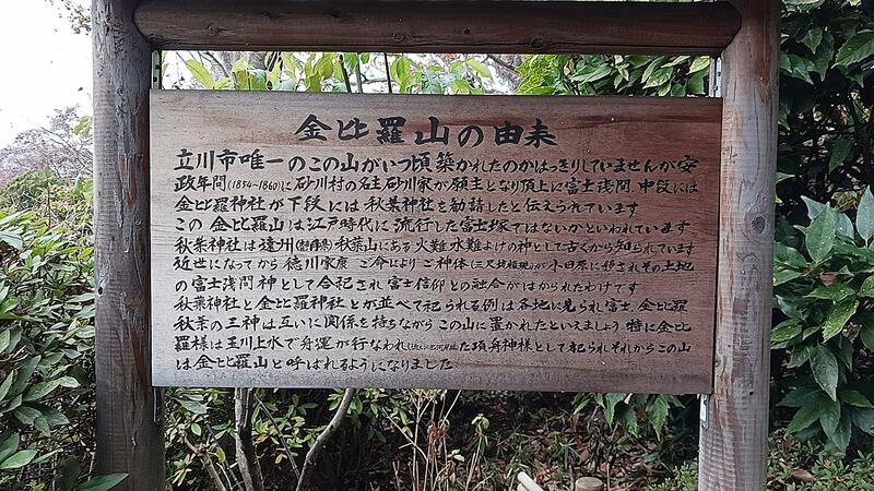 立川市に山があるのをはじめて知りました。高さ15メートルで玉川上水を掘ったときの上砂を盛って作ったと歴史と文化の散歩道に書いてありました。