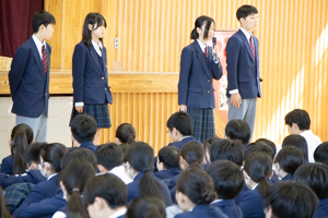 なお、本日は"カジュアルDay"でした。平日の実施は初めてでしたが、これまでの傾向と同じく、保健体育科の授業がある学級ではジャージ・体操着での登校する生徒が多くみられました。